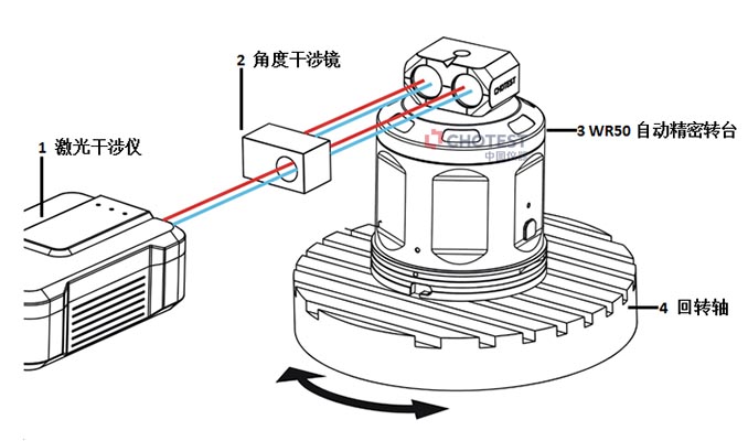 图 2激光干涉仪结合自动精密转台测量回转轴示意图