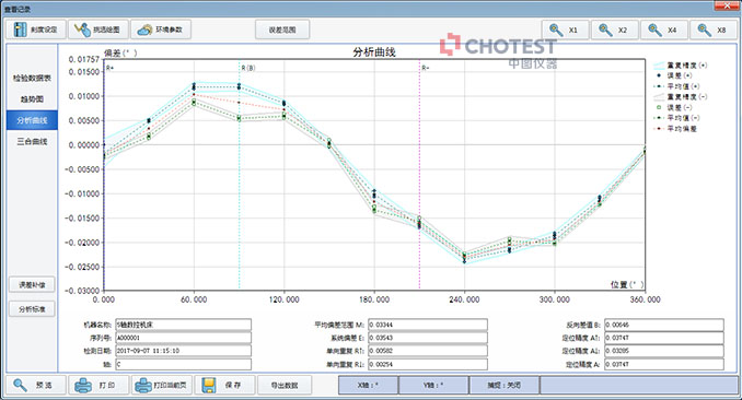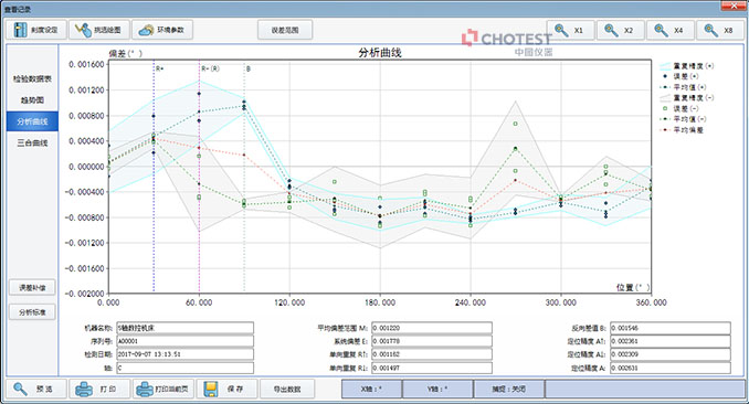 4. 可自动生成误差曲线和补偿数据,根据不同标准自动计算定位精度结果,无需人工计算。